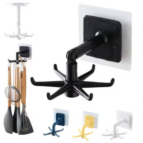 Descripción: ganchos plegables giratorios de 360 grados, multiusos, para colgar utensilios, gancho vertical abatible de 180 grados, gancho autoadhesivo, estante para utensilios con 6 ganchos para cocina, baño, toallas (negro)